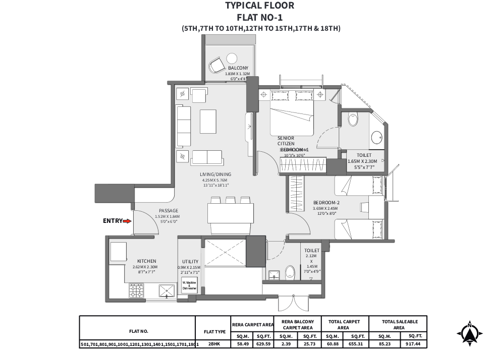 - Provision of panic alarms in master bedroom, master toilet, and living area of all senior citizen flats.