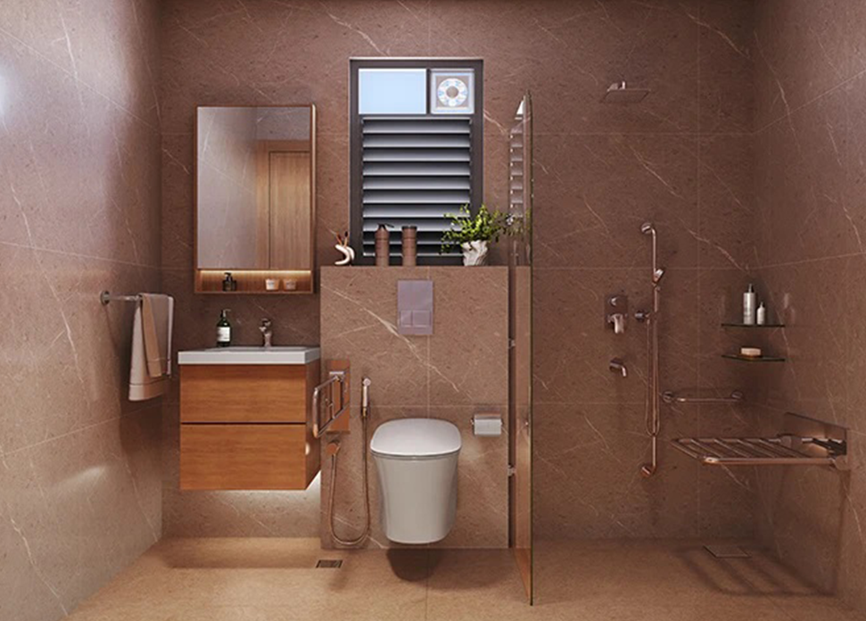 Thoughtfully Designed for Seniors – With Panic Alarm System, Anti-skid Tiles, Grab Bars & Wheelchair-friendly Access for safety, comfort, and peace of mind.